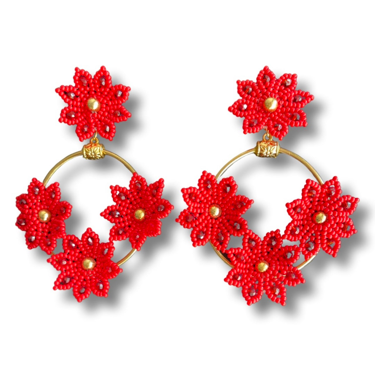03. Earrings designed in four red flowers