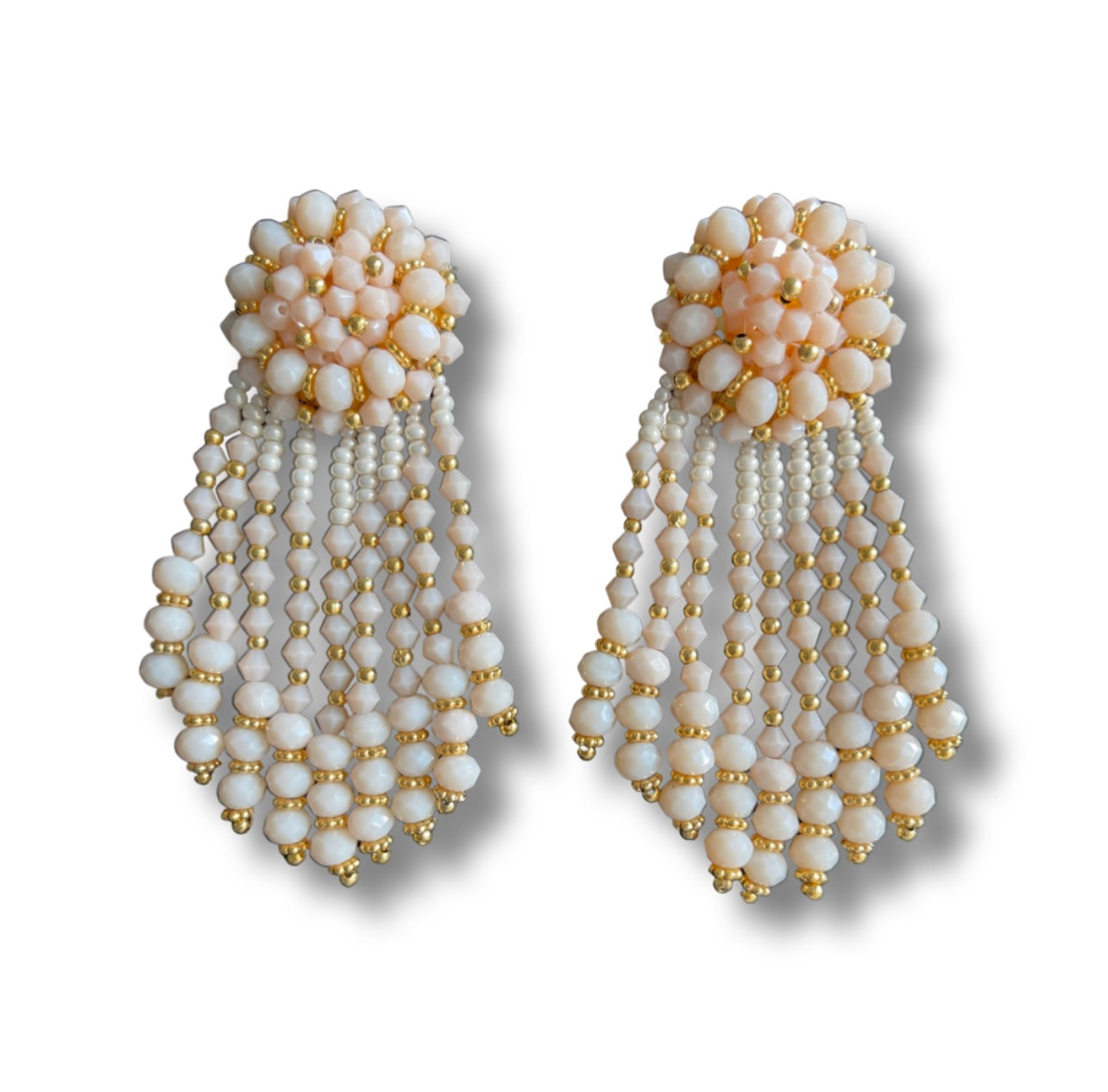 These exquisite Elegant pink and gold rain earrings are perfect for any special occasion or celebration. Its dainty pink and gold design makes it ideal for formal occasions or even just to add a touch of elegance to any look.